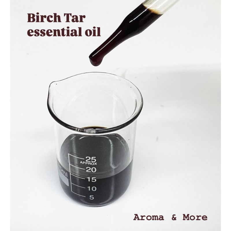 This oil is produced through dry distillation of birch bark in a low-oxygen environment at high temperatures (~200°C+), yielding a viscous, dark brown to black crude tar. This is further refined via steam distillation or purification to remove impurities, resulting in a safe essential oil.